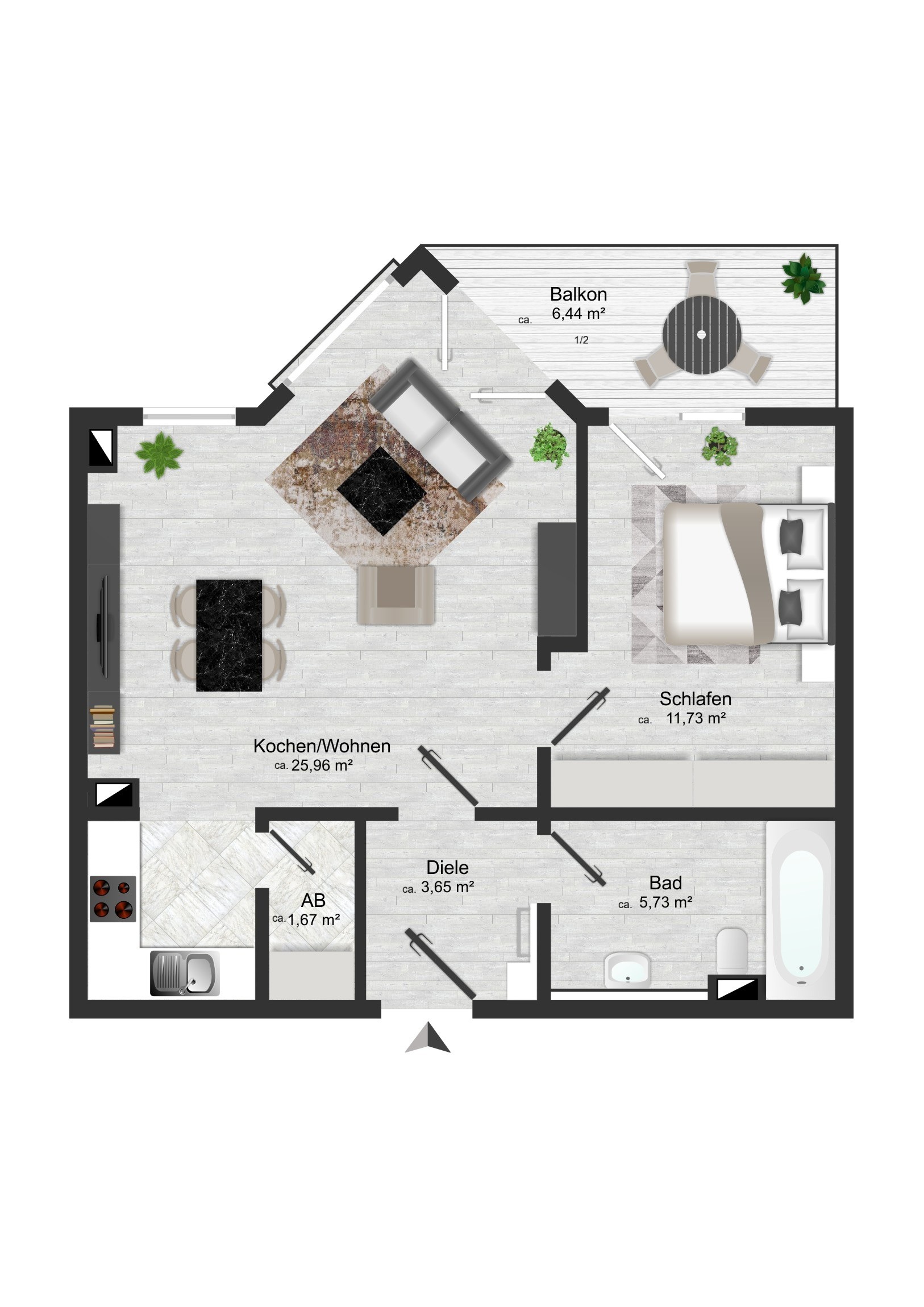 Die Wohnung ist aktuell vermietet. Die Mieteinnahmen betragen 5.517,12 EUR p.a. (inkl. TG-Stellplatz).